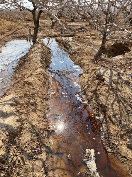 آبیاری استارت باغات پسته بصورت غرقابی در 5 هکتار از ارضی شرکت در شهرستان دامغان
